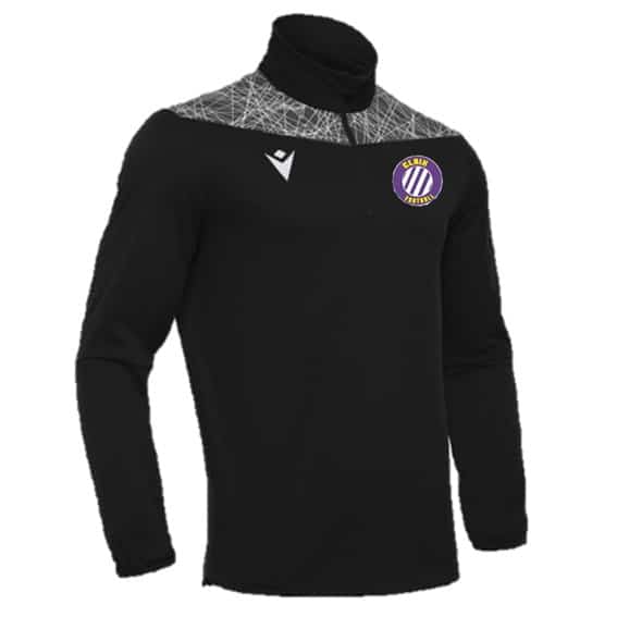 1/4 zip renversé avec curseur autobloquant Poignet en lycra Bas avec cordon Texture sublimatique sur inserts sur épaules sur front et sur dos